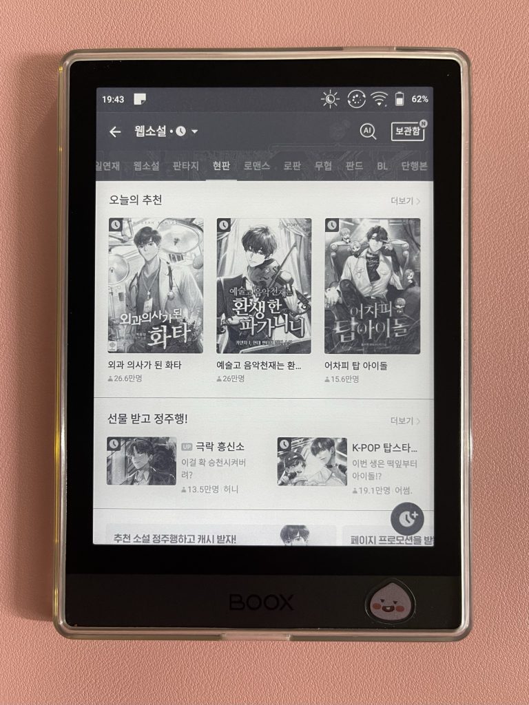 일상 ONYX BOOK Poke 2 2022-08-13 / No Comments 오닉스 포크2 정말 느리고 정말 오래가는 전자책 단말기 네이버 북스 설정: 앱 최적화 해제 후 사용 가능